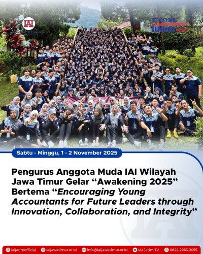 Villa Sinar Trawas, Mojokerto, 1-2 November 2025 – Pengurus Anggota Muda Ikatan Akuntan Indonesia (IAI) Wilayah Jawa Timur sukses menyelenggarakan kegiatan Awakening periode 2025-2026 dengan tema "Encouraging Young Accountants for Future Leaders...