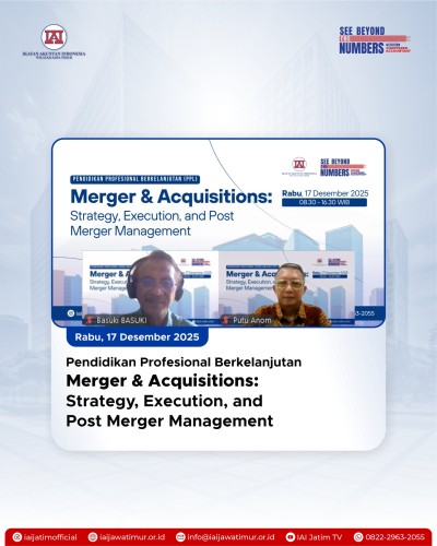 Surabaya – Ikatan Akuntan Indonesia Wilayah Jawa Timur kembali menyelenggarakan kegiatan Pendidikan Profesional Berkelanjutan (PPL) bertajuk “Merger & Acquisitions: Strategy, Execution, and Post Merger Management” pada Rabu, 17 Desember 2025. Ke...