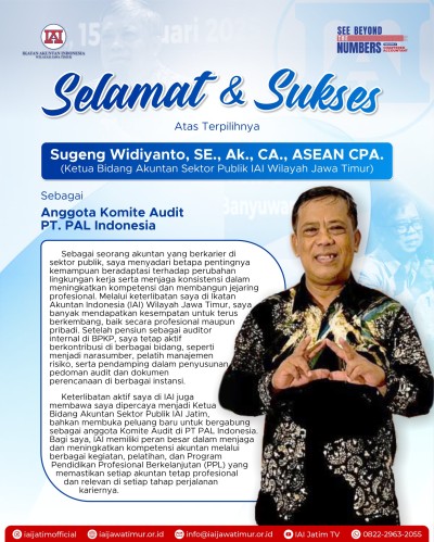 Sebagai seorang akuntan harus adaptif atas perubahan lingkungan kerjanya. Apalagi berprofesi sebagai akuntan di sektor pemerintahan/publik, sebagai auditor intern pemerintah. Untuk itu diperlukan sikap konsisten dalam maintanace kompetensi dan m...