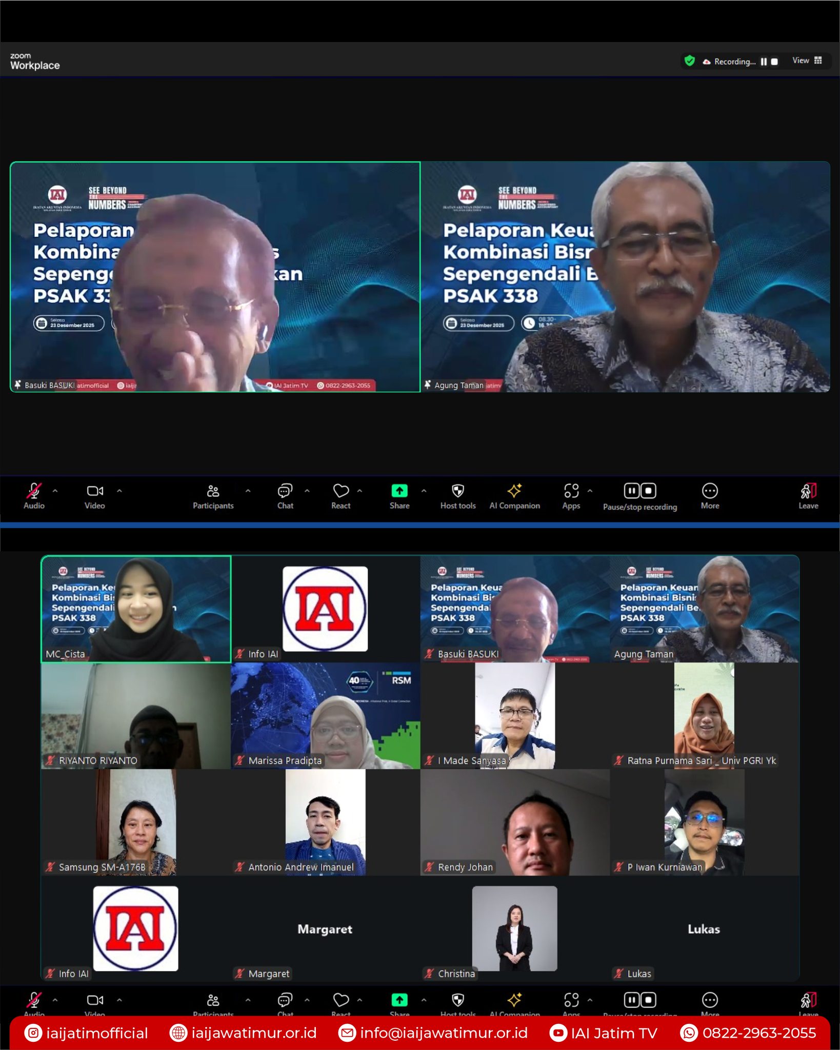 Pelatihan menghadirkan Dr. Yie Ke Feliana, S.E., M.Com., Ak., CA., CPA., CFP., CRA., selaku Wakil Ketua Bidang Kajian Standar Akuntansi IAI Wilayah Jawa Timur, sebagai narasumber utama. Materi yang disampaikan mencakup ruang lingkup PSAK 118, persyaratan umum penyajian laporan keuangan, prinsip agregasi dan disagregasi, laporan laba rugi, laporan posisi keuangan, laporan perubahan ekuitas, serta catatan atas laporan keuangan.